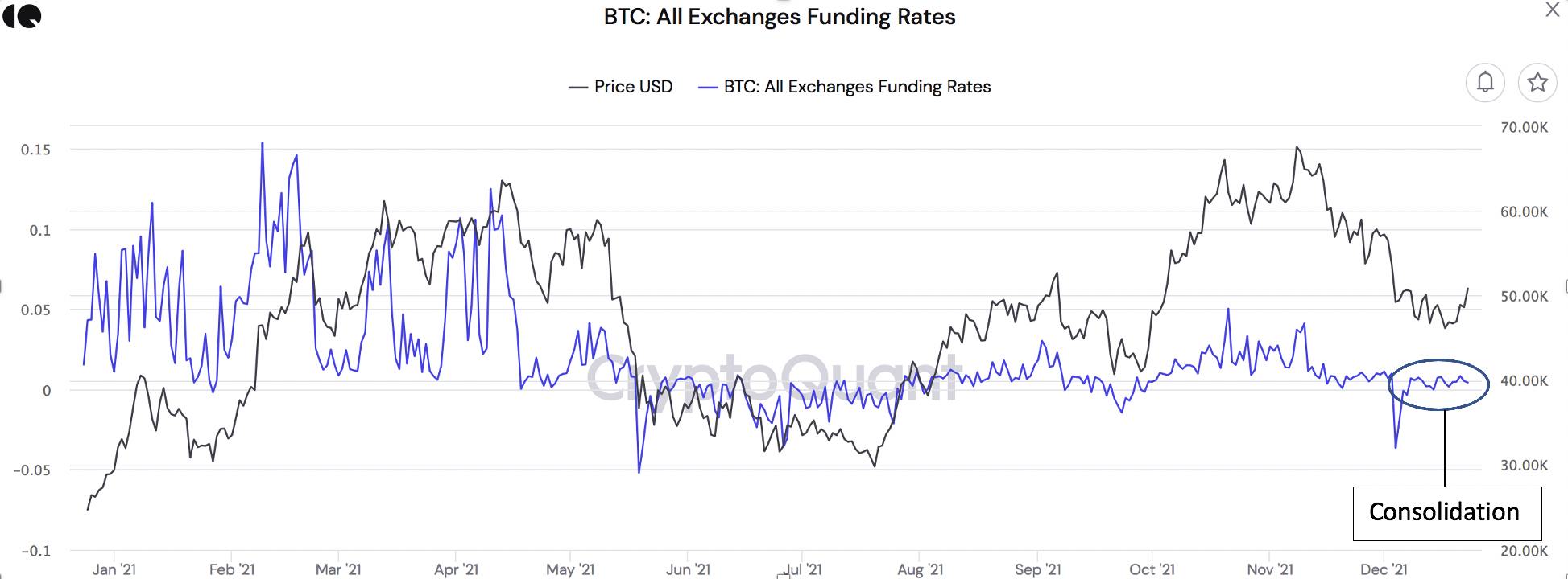 Positive Futures Funding rates have picked up but consolidated lower than highs established prior to the leverage flush