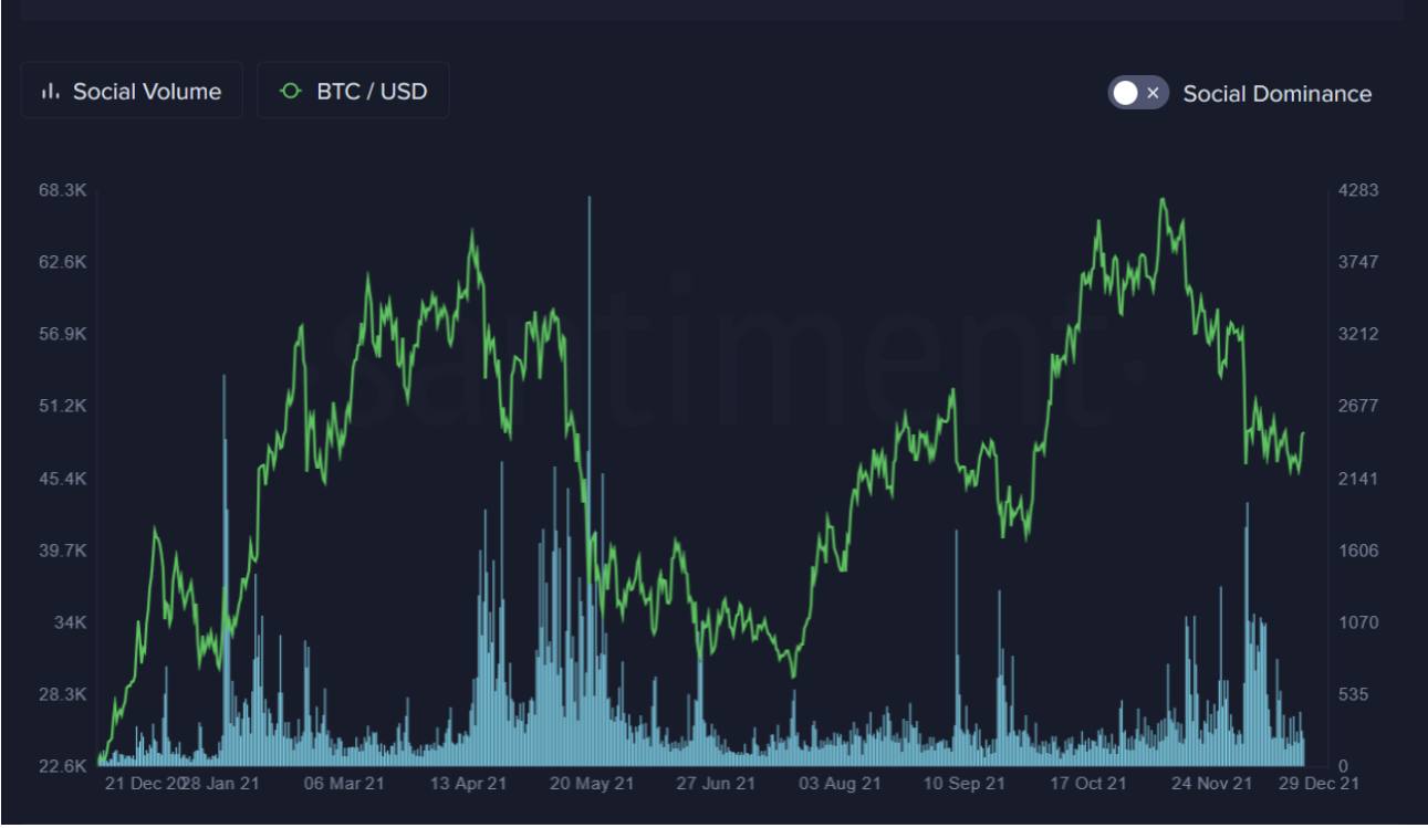 Prices have in the past week reacted well to bearish social sentiment. It would be prudent to keep an eye on these levels if prices break above $50k, as a potential new wave of retail euphoria could signal another correction.