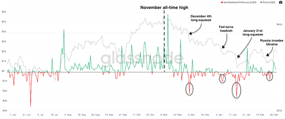 The uncertainty in the macro environment has made near-term price action very volatile in the Bitcoin market. This volatility will persist as long as the factors leading to this uncertainty remain.