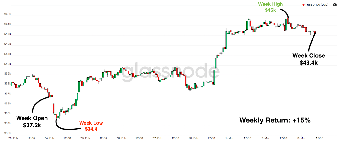 The largest cryptocurrency posted its largest single day gain (+12.8%) in more than a year on Feb 28th