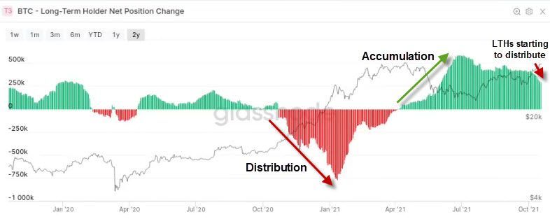 Bitcoin has reached a new all-time high today, reaching $66.9k. Digital gold has performed extremely strongly in the last few weeks, soaring by more than 30% during the month of October. We'll delve into how long-term holders are behaving, as tendencies transition once prices reach new all-time highs. We had established in previous reports that long-term holders (LTHs) had undegone a period of bitcoin accumulation since the July lows of $29k. It is therefore important to see whether LTHs are starting to spend or if they are continuing their holding behaviour.