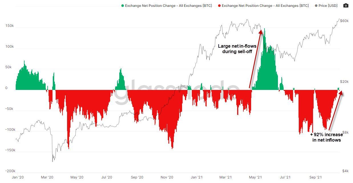 There were large net in-flows during the May-July period as investors looked to sell their coins. We observed significant net outflows since then.