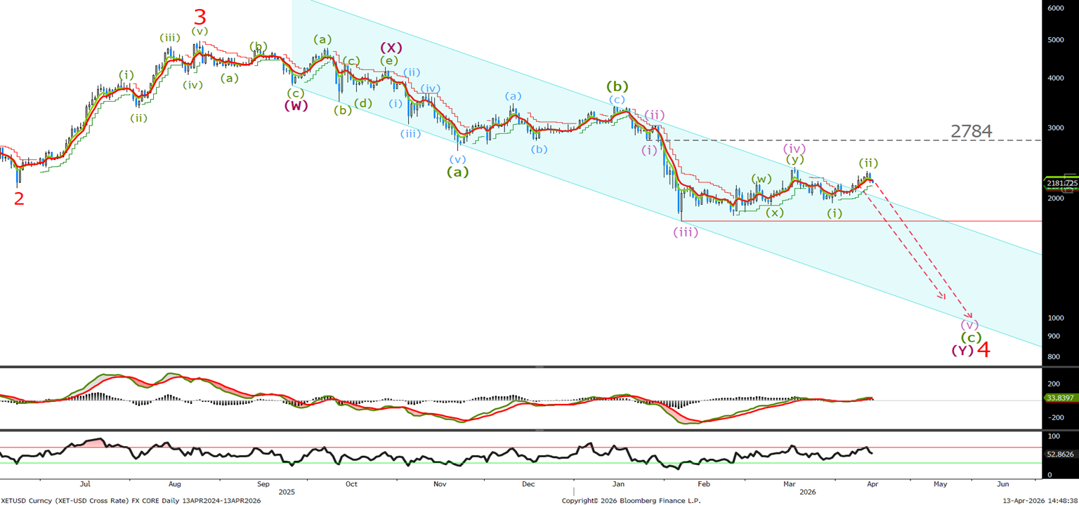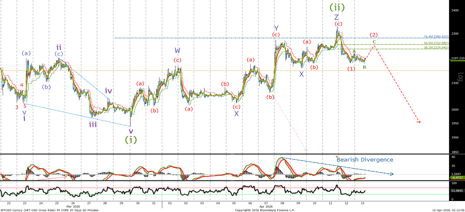 On a weekly basis we continue to look for lower whilst below the wave (X) high, Lets look to the shorter term to see how far along wave (C) we are.