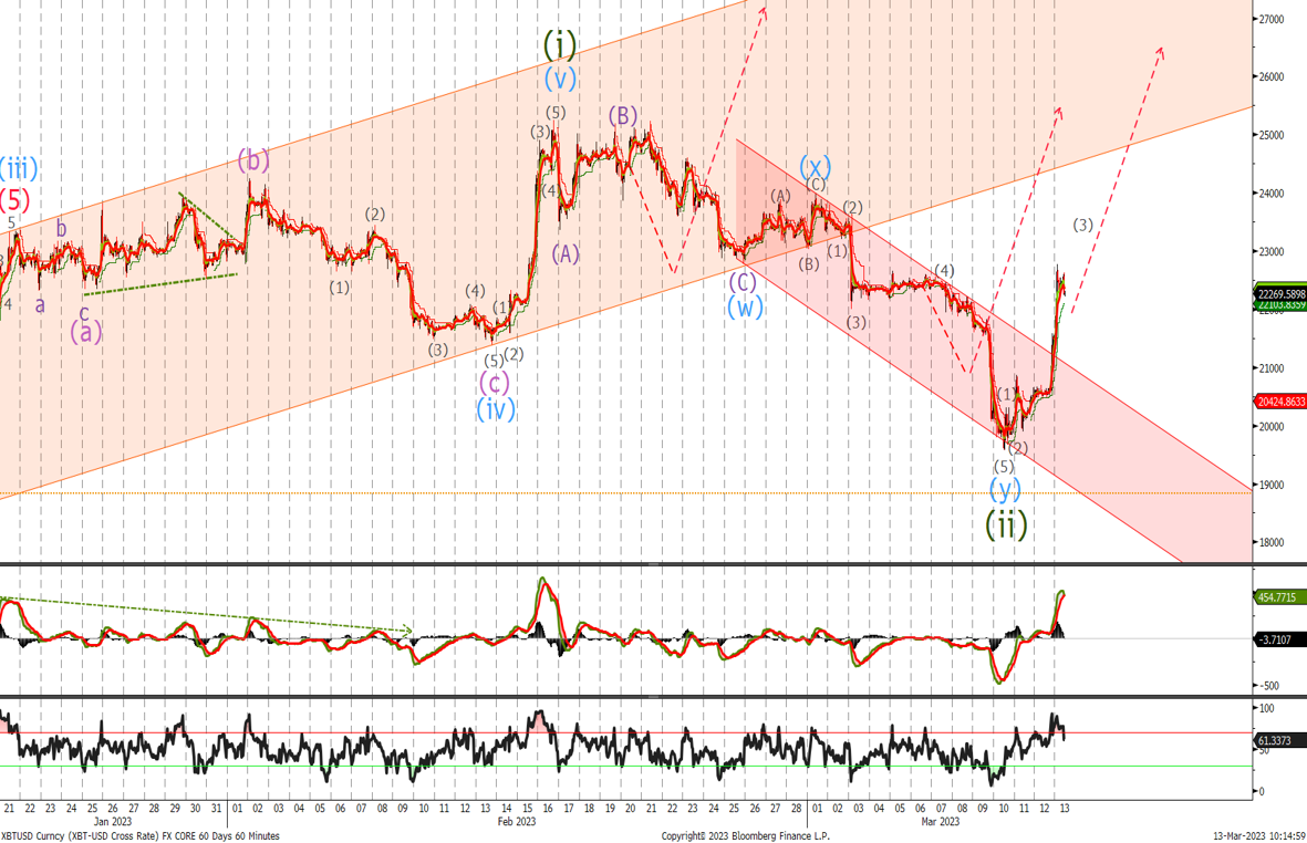 We traded down to $19'578 enabling us to add to longs are now looking for major wave (iii) to rally in 5 waves. With initial targets above $27k. Given the break out of the channel we will call; wave (ii) in place we can raise stops to last week's lows and use any pullbacks to buy if not already long.