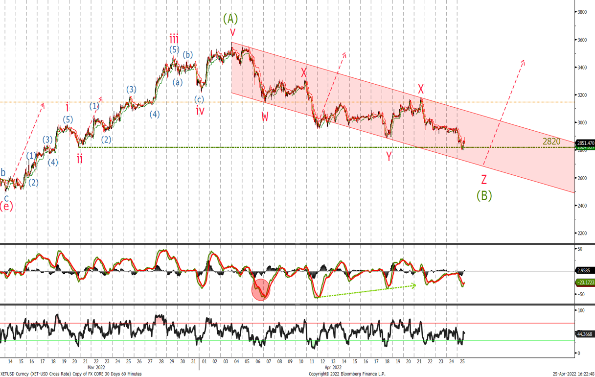 Like BTC we are just testing the $2'820 level, so I am showing the slightly more bearish view for a close below that level.