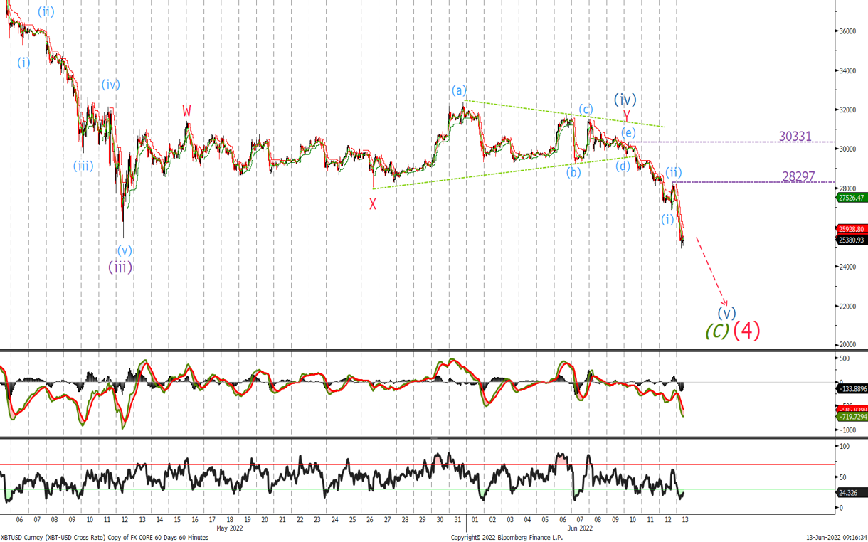 Expecting BTC to sell lower in 5 waves to the $20k level before buying back and selling on a rally to $28'297 with a confirmation of new uptrend with a move above $30'331.