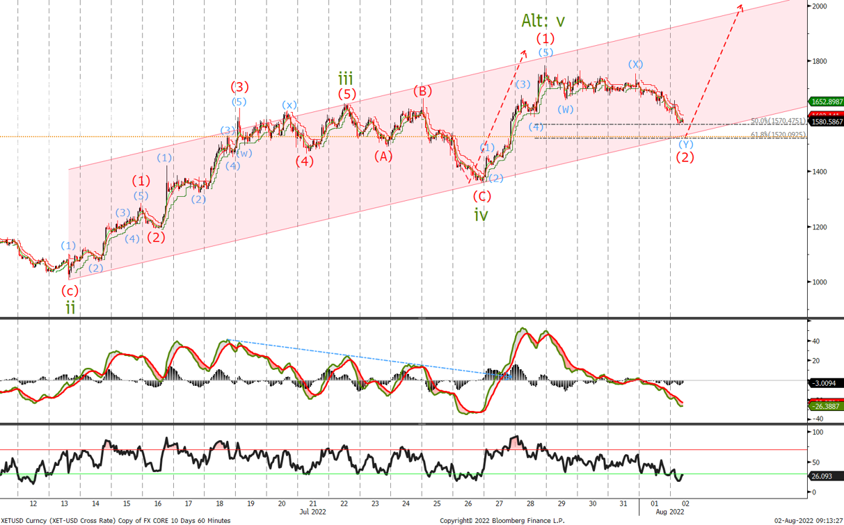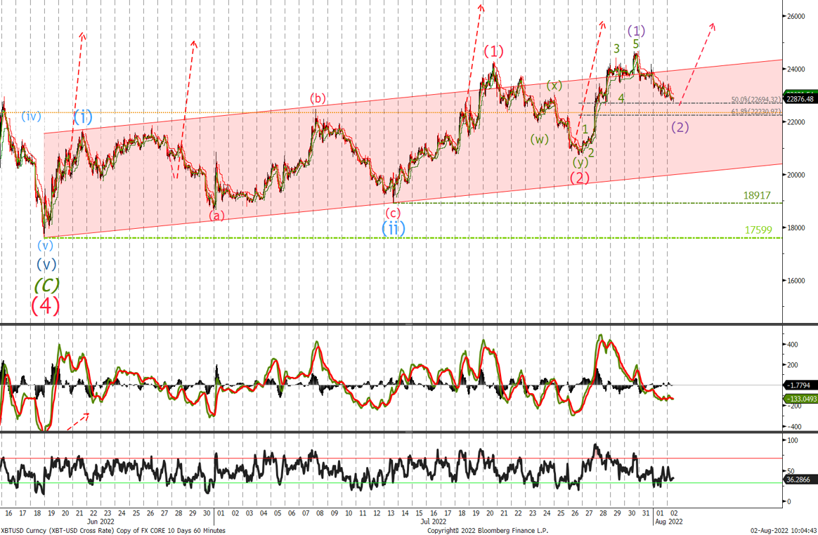 We traded down to $20'730 enabling us to buy. If correct then we could see BTC trade slightly lower to complete minor wave (2) into the $22'200 / $22'700 area.