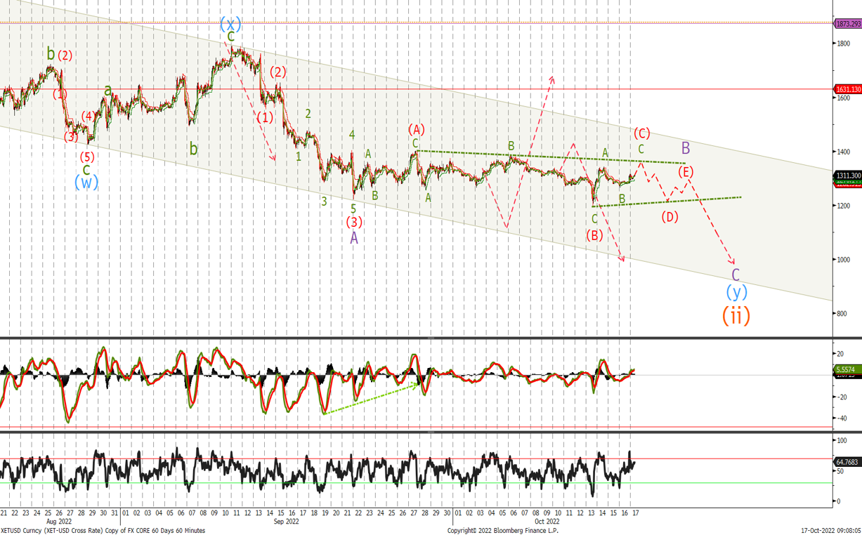 I changed the wave count to show a larger zigzag correction playing out. Look to sell in the $1'480/$1'555 area stops at $1'660. A break below $1'300 should see an acceleration lower and I would buy now in the $1'000/$1'100 range