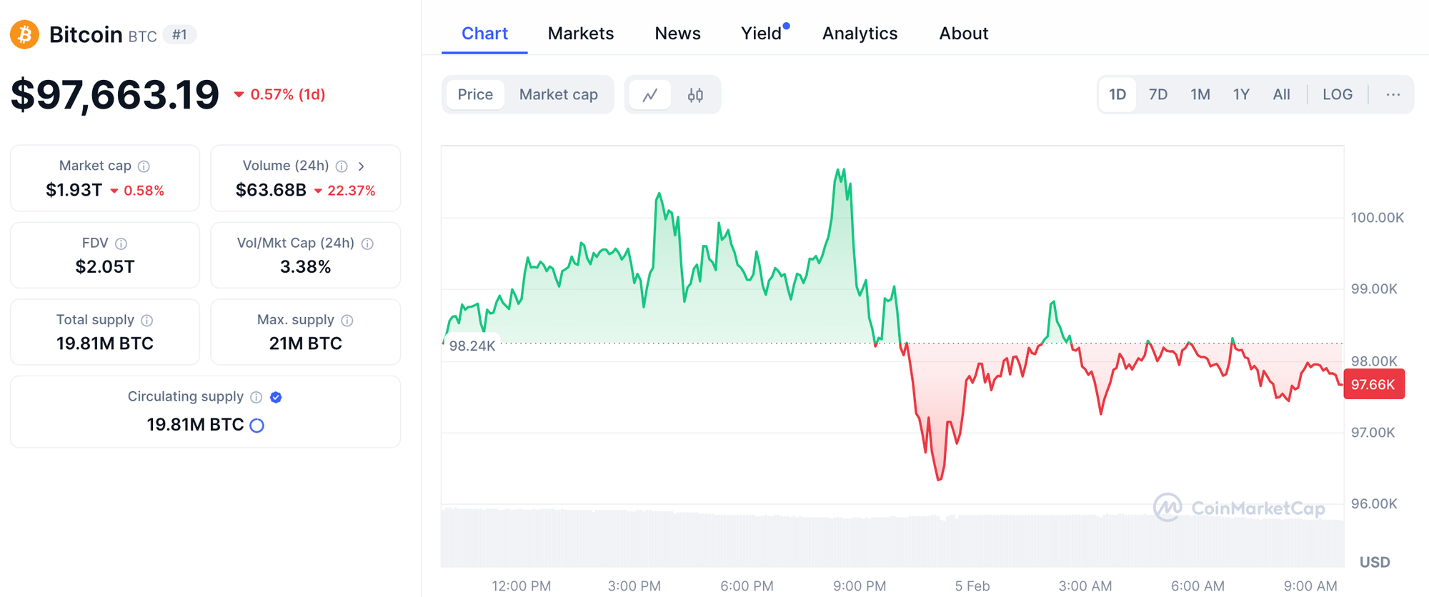El Salvador has expanded its Bitcoin holdings with recent purchases: 11 BTC acquired on February 4 at $101,816 each, followed by 1 additional BTC at $99,114. El Salvador's total Bitcoin reserves now stand at 6,068 BTC, worth more than $554 million at current prices.