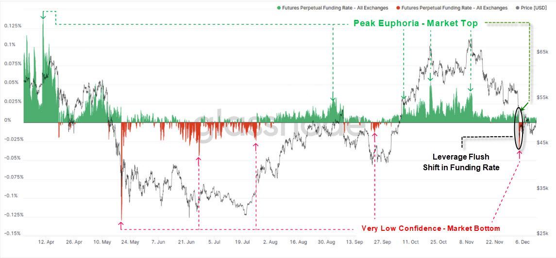 - 'Peak Euphoria' when funding is positive often correlating with price tops