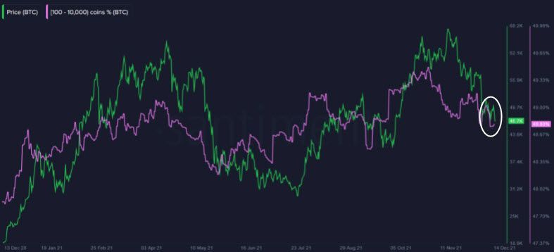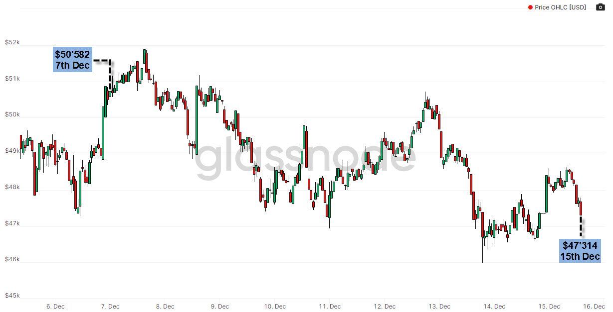 Bitcoin 'Whales' have also demonstrated a lack of confidence in Bitcoin as we approach the end of the year. Their combined balance has dropped by approximately $1.86bn in the last seven days.