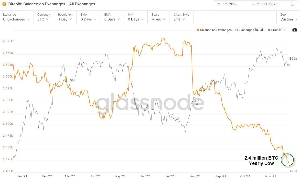 - Balance on Exchanges are at a yearly low
