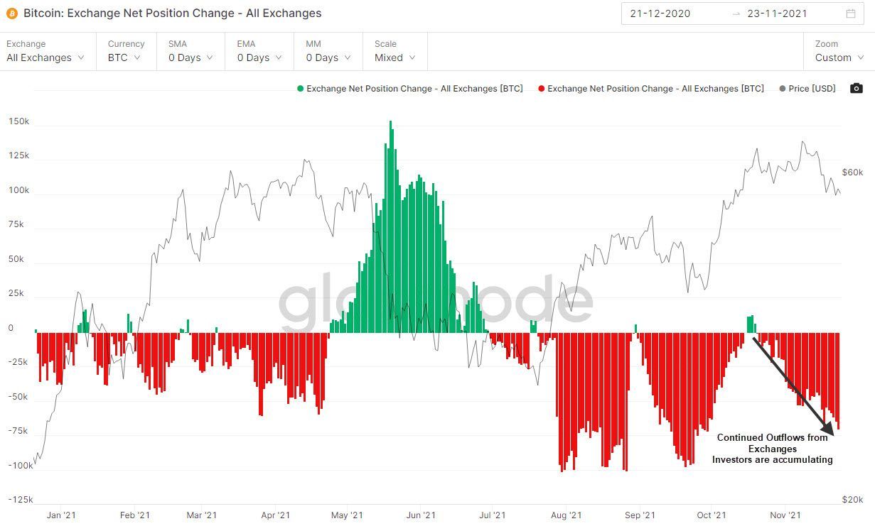 - Exchange Net Position Change is increasingly leaning toward net outflows