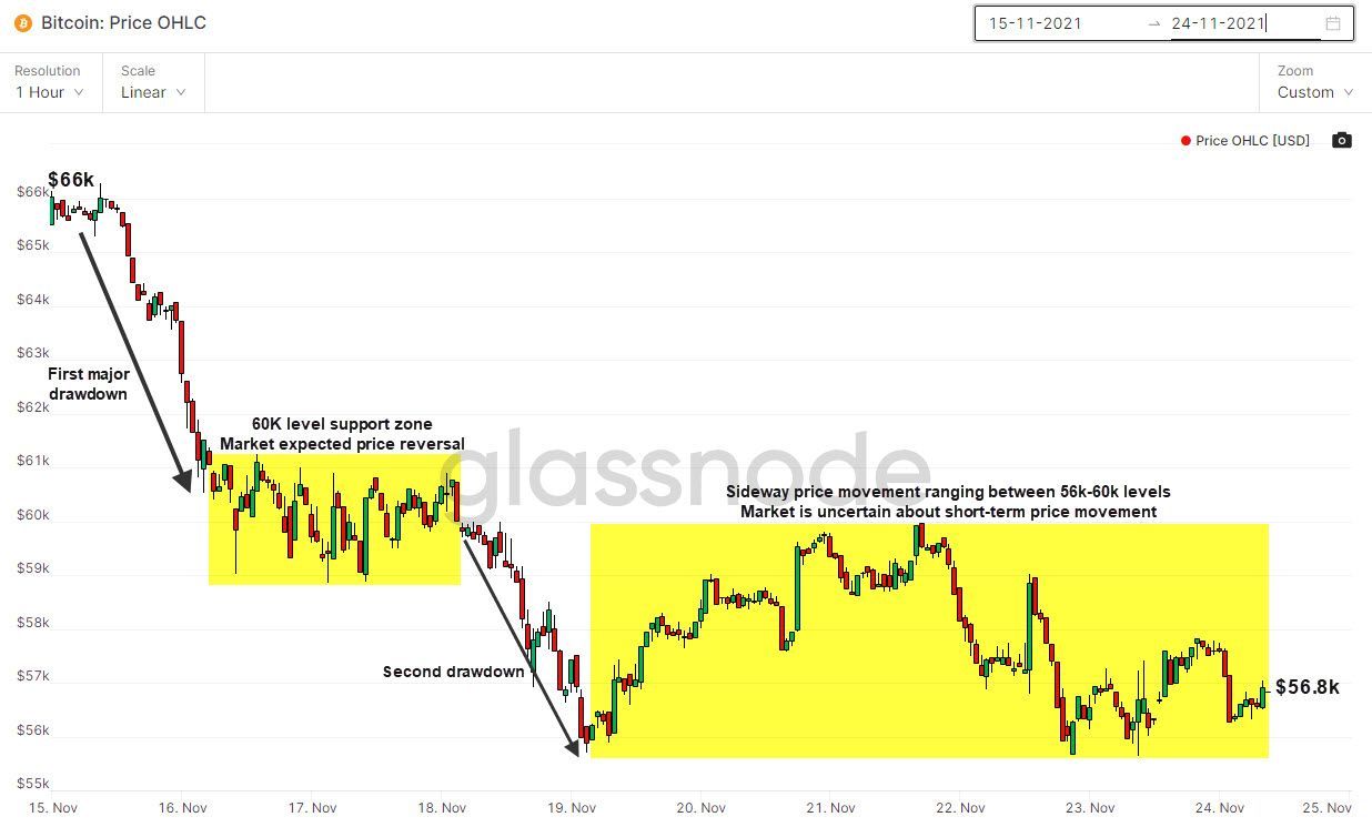 - Price suffered a major drawdown from $65k levels and found support at the $60k levels