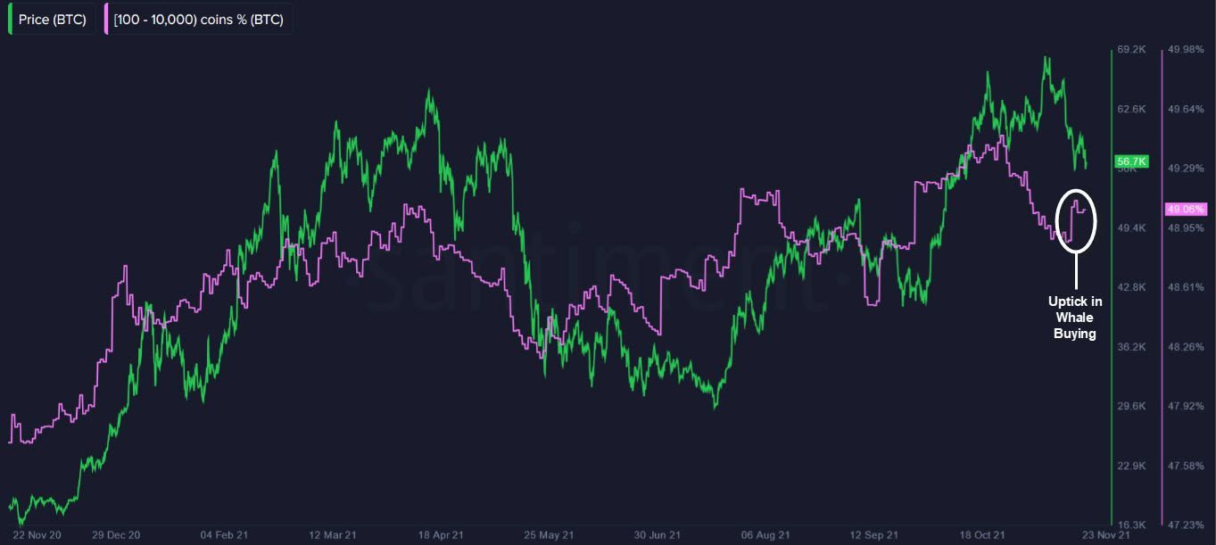 Whales have started buying the dip, consolidating current support levels and creating potential upward momentum in prices.