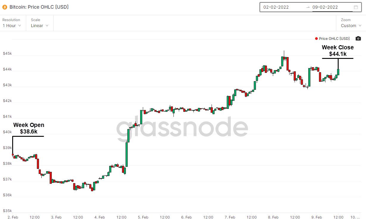 - Since last week, price has increased by 12.5% from $38.k to $44.1k at the time of writing