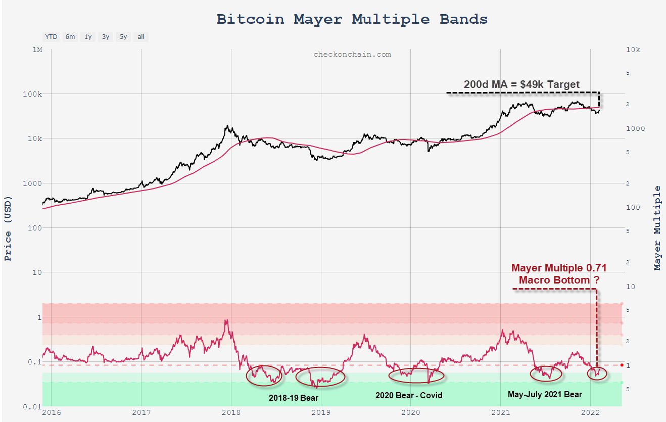 Bitcoin has historically been undervalued at current MM levels which have in the past three years signalled generational bottoms
