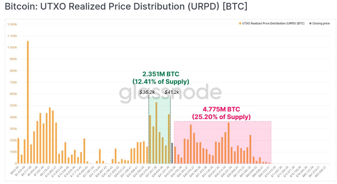 12.41% of supply has last transacted between $36.2k - $41.2k