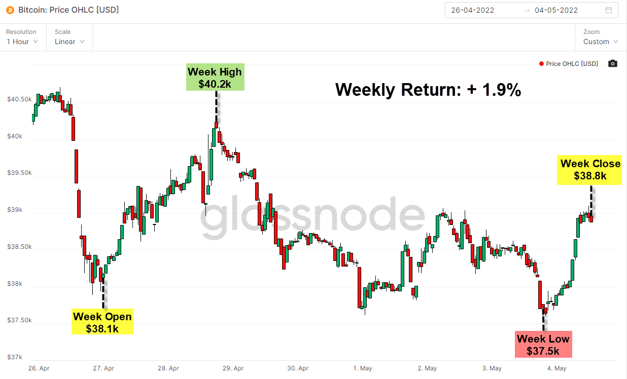 - Bitcoin's price has primarily ranged between $37.5k - $44k in 2022