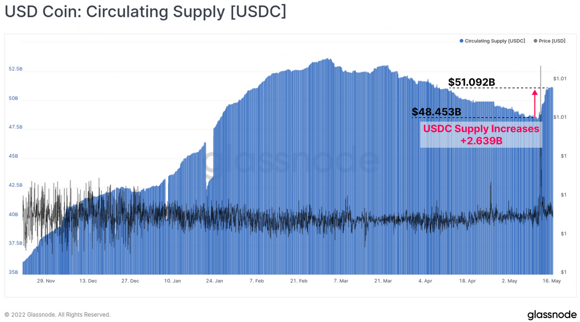 - USDC reversed the trend of supply contraction that has been in place since late Feb, expanding by $2.639B