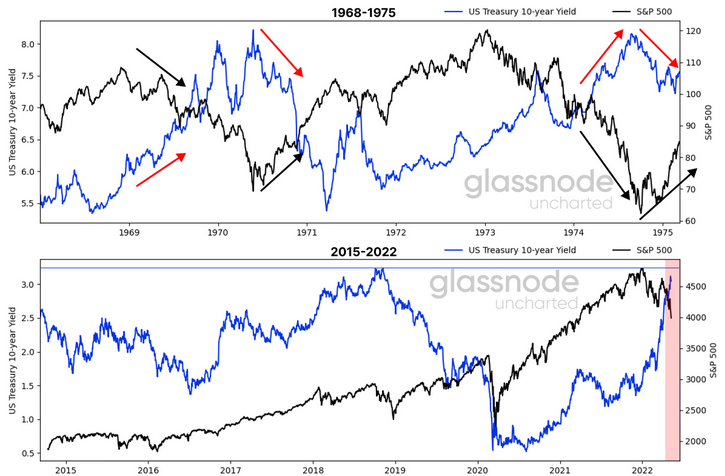 - We are entering a similar regime as in 1968-1975, where an increasing US 10-year maturity, due to high inflation pressured the S&P 500 downward