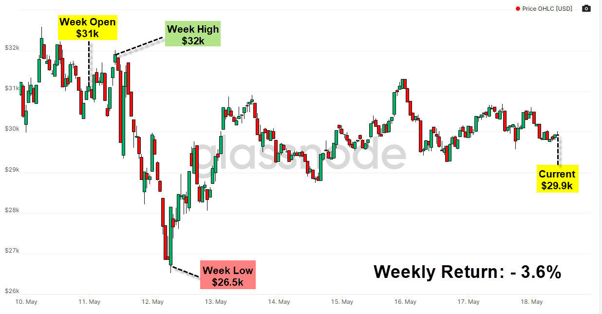- BTC experienced a volatile week and dropped to lows last seen in 2020.